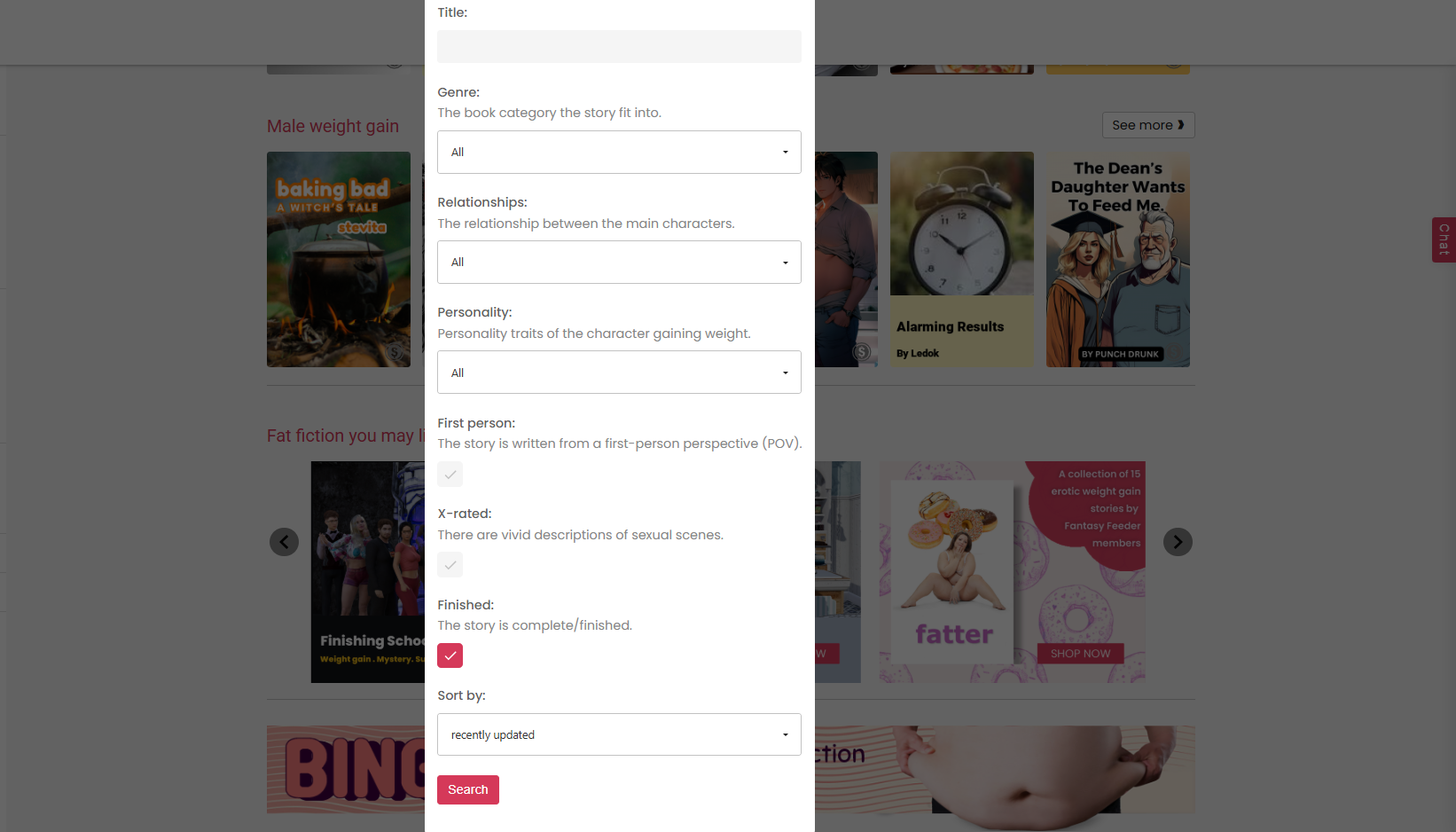 You can now filter for finished stories using the “Advanced Search” options on the story page and select the tick box for 'Finished'. That means no more wondering if a story will be completed... If you prefer completed stories you can simply dive in and enjoy it all the way through to the end!