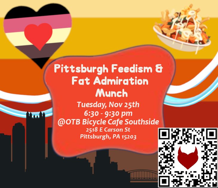 PGH Feedism is for Pittsburgh's local kinksters into Feedism and Fat Admiration. We're a group of Feedees, Feeders, Gainers, Encouragers, Mutual Gainers, BBWs/BHMs, other related fat & weight gain fetishists/kinksters & identities!