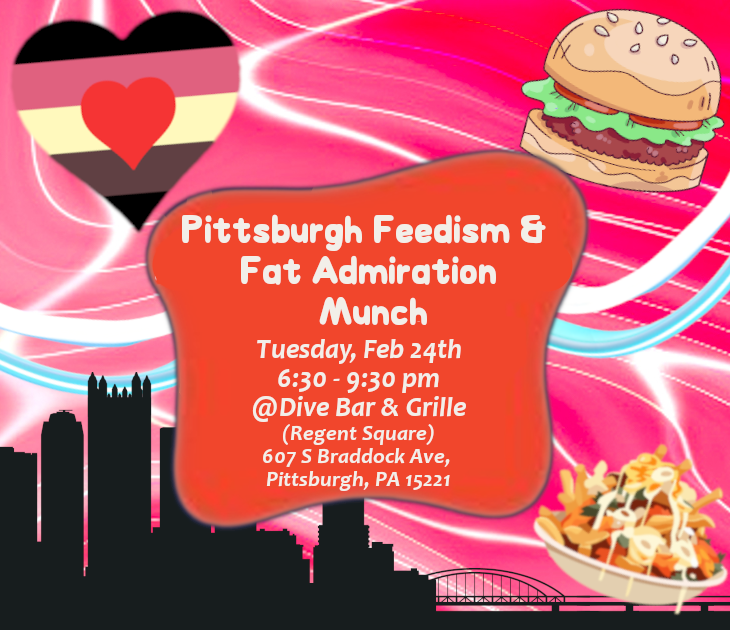 We're meeting this January, Tuesday the 27th from 6:30-We're meeting February, Tuesday 24th from 6:30-9:30pm at Dive Bar & Grille in Regent Square. You can RSVP on the Feabie Meet Event Page (feabie.com/Event/PGHJan2026) or the Fetlife Event Page (fetlife.com/events/1966853)
