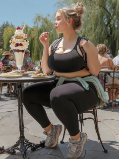 An elven woman spirals into obesity and desire, trapped by a cruel pact, losing herself to food and lust in a dark tale of ruin.