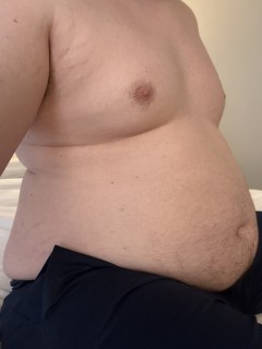 Eating a large stuffed crust pizza with a 2 liter of soda.